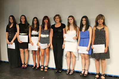 | Diplomas a los mejores expedientes. En el centro la Directora. |