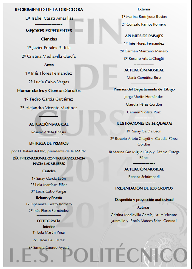 ACTO DE FIN DE CURSO DE 2º DE BACHILLERATO