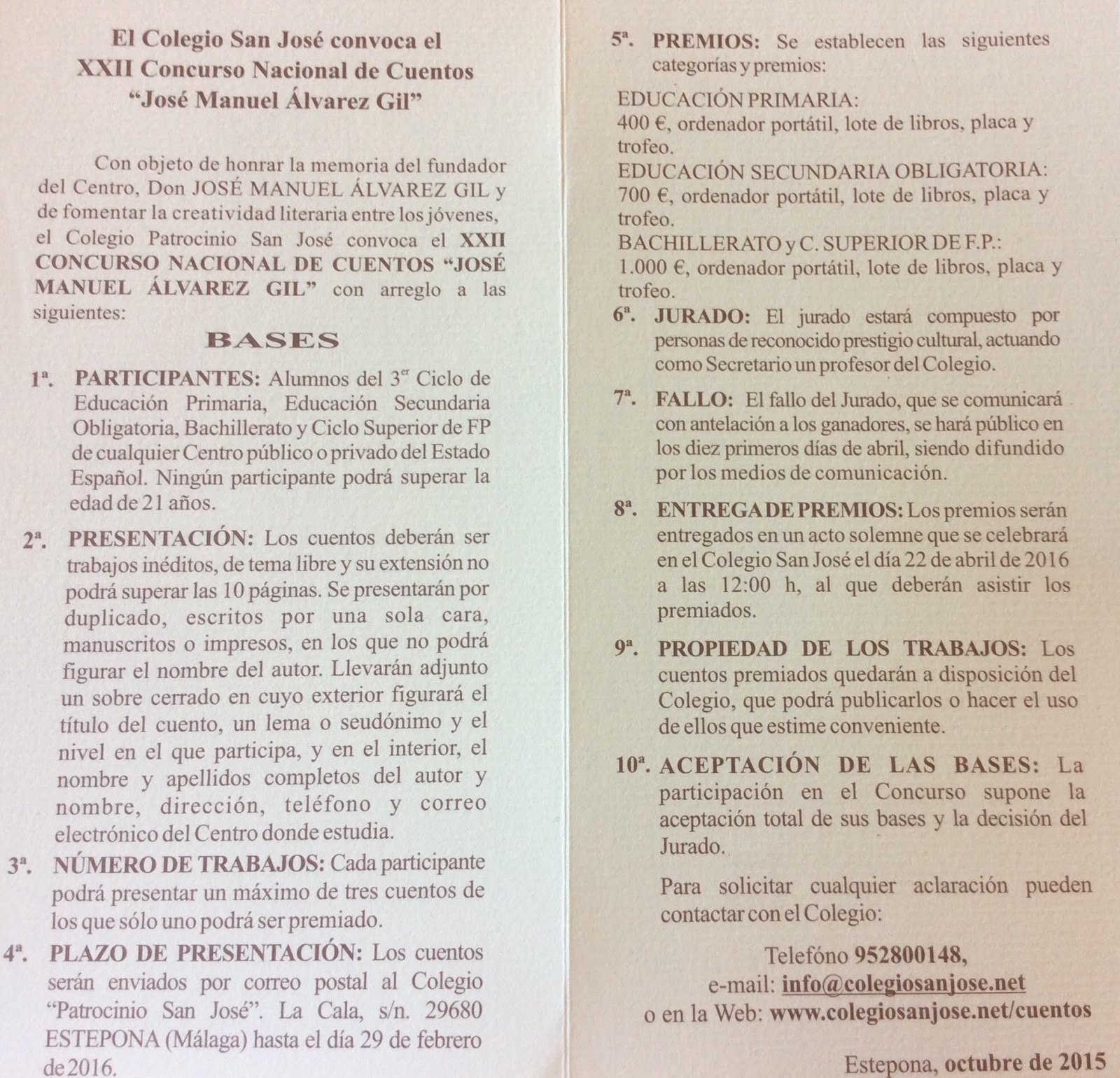 XXII CONCURSO NACIONAL DEL CUENTOS “JOSÉ MANUEL ÁLVAREZ GIL”