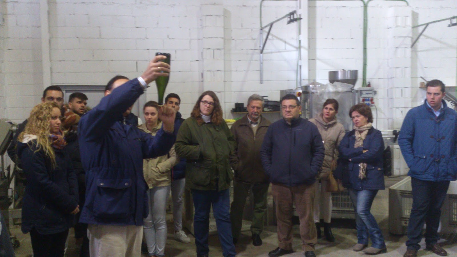 Foto 2; Dº. Rafael Salado, gerente de la empresa, enseña a alumnos y profesores el proceso de embotellado de la industria.