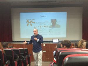 D. Eduardo Gil, el popular y prestigioso periodista deportivo de Canal Sur Radio, estuvo con nuestros alumnos de 2º de bachillerato el pasado 10 de noviembre en una charla organizada por el Departamento de Lengua Castellana y Literatura. Tras una amena, exhaustiva y motivadora ponencia sobre comunicación, se dio paso al turno de preguntas en el que se disfrutó de una fluida participación y un interesante debate sobre temas como periodismo, honestidad y deporte. Por todo ello el IES Politécnico agradece a D. Eduardo Gil su participación en las actividades organizadas.