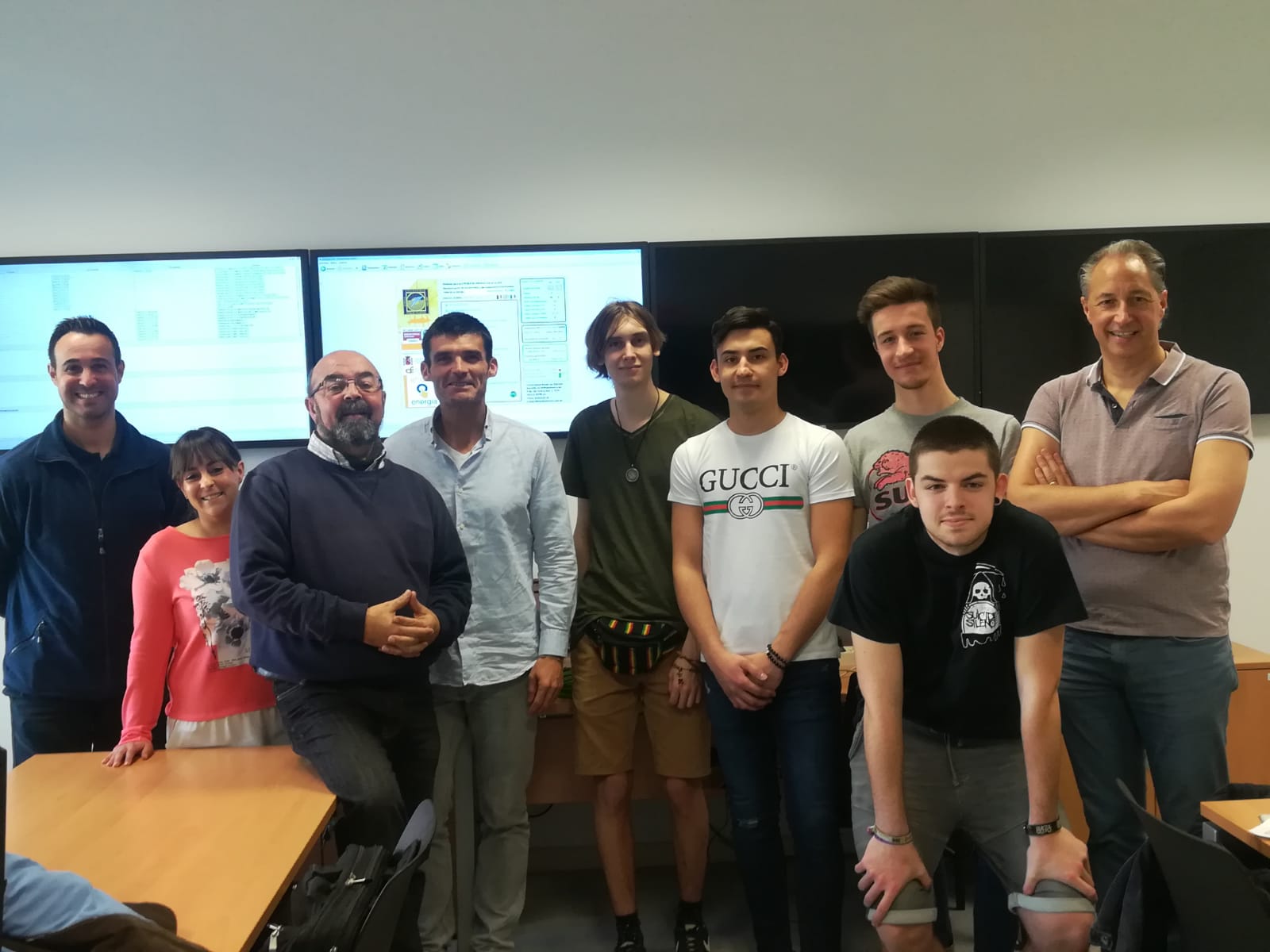 En esta primer, imagen en la Universidad Pablo de Olavide en el área de IMEE de Infraestructuras, Mantenimiento y Eficiencia Energética dentro del SGIEE Sistema de Gestión de Instalaciones y Eficiencia Energética https://www.upo.es/infraestructuras/sistemas-gestion/sgiee/ . En la imagen, presentes el alumnado belga, Jo Reynders, profesor de Campus Halt, Fernando Cerezo y José Luis Pavón, responsables del SGIEE y del área de IMEE, Juan Luis Aguirre coordinador de los Proyectos Erasmus+ del IES Politécnico.