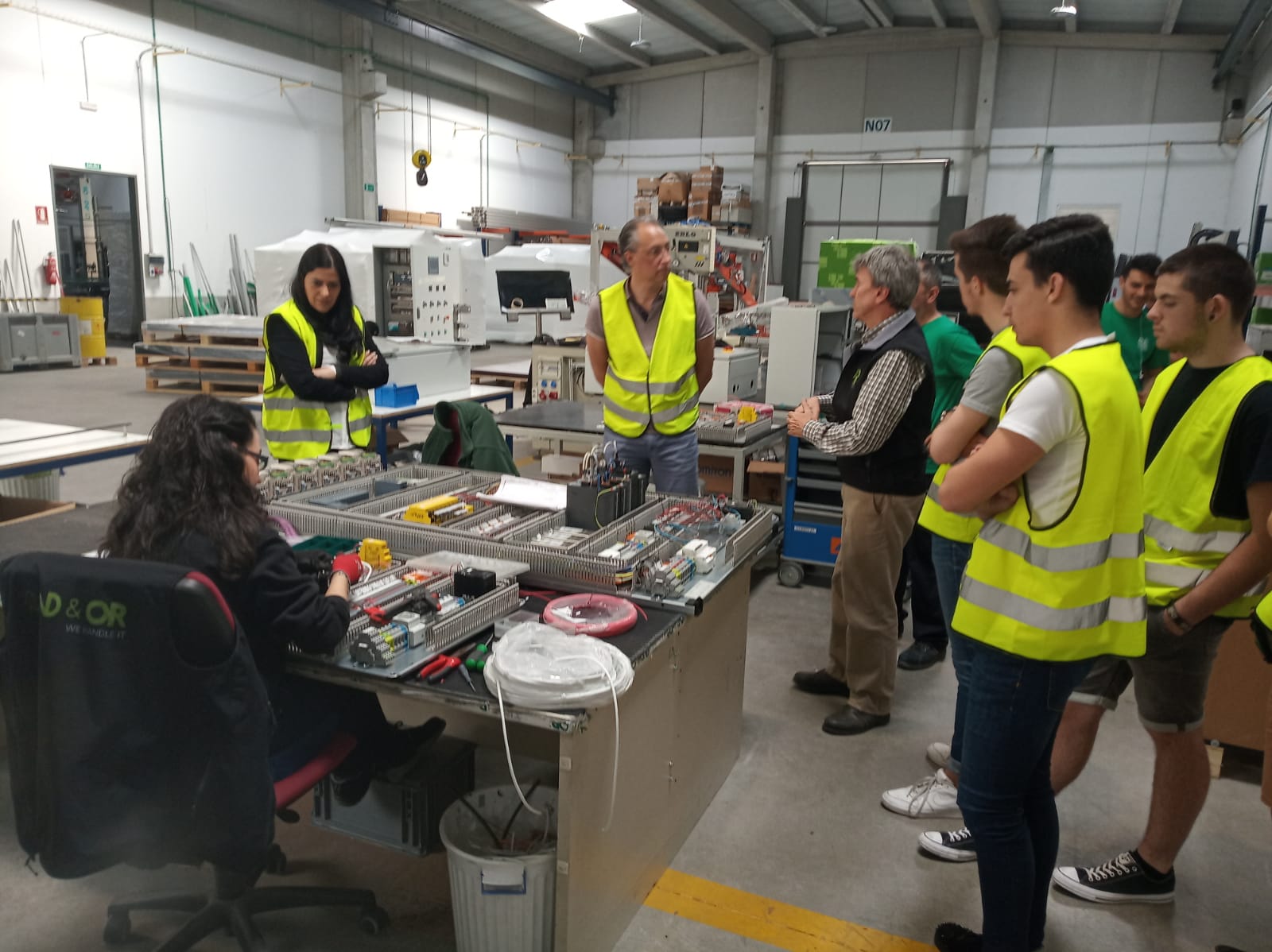 En esta segunda, imágenes en la empresa AND&OR  https://www.andyor.com/ empresa de referencia mundial en la fabricación de instalaciones automáticas para el envasado. En ella se puede observar, además de los indicados en la imagen anterior, a Jaime Lobato y Noelia Gómez de la citada empresa.