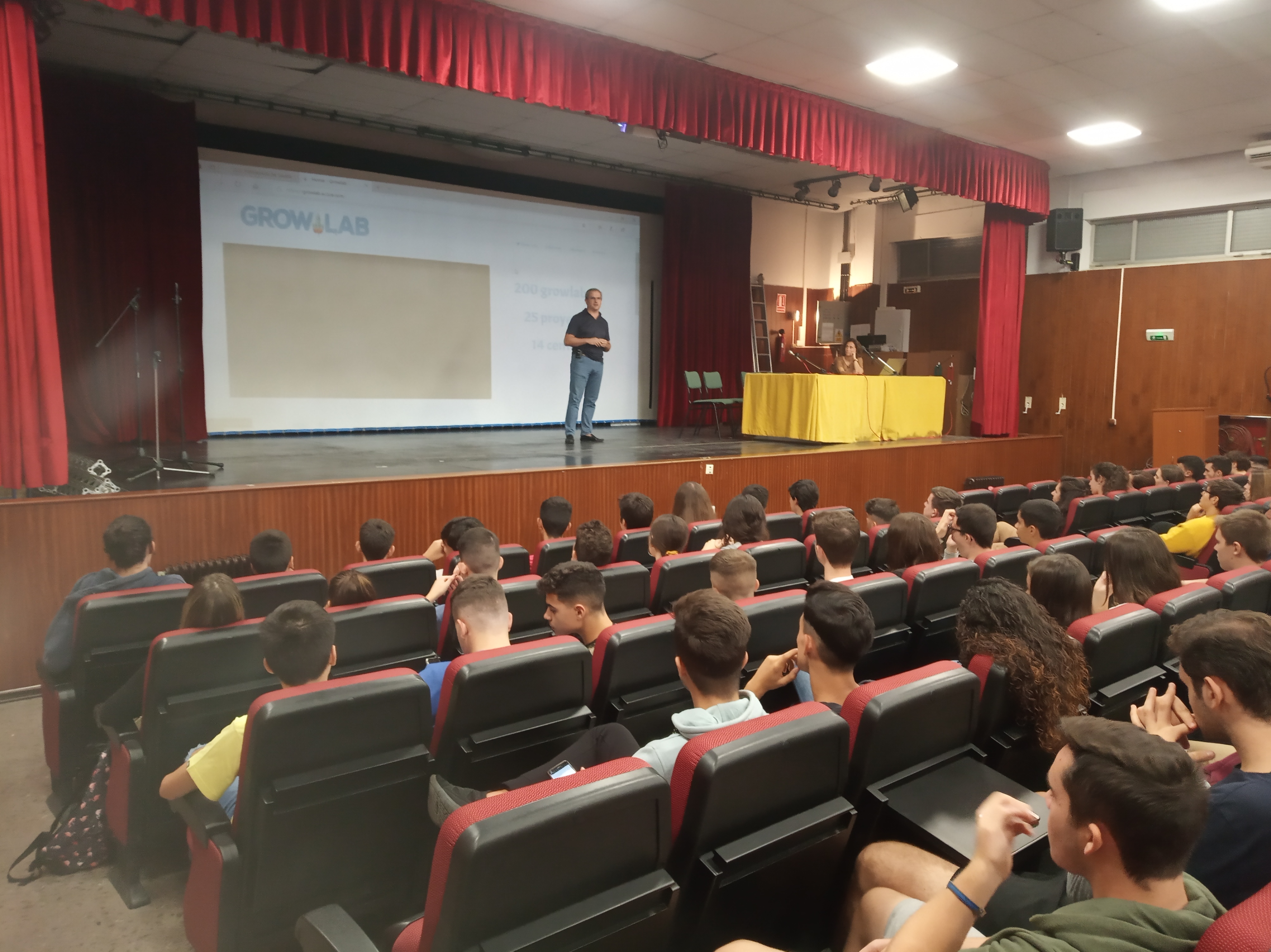 El pasado jueves 10 de octubre se presentó al centro la 3ª Edición de Growlab de la mano de sus organizadores en un acto celebrado en el Salón de Actos al que acudieron los primeros cursos de Bachillerato y varios de los grupos de los Ciclos Formativos de Grado Meido y Superior del horario de mañana.