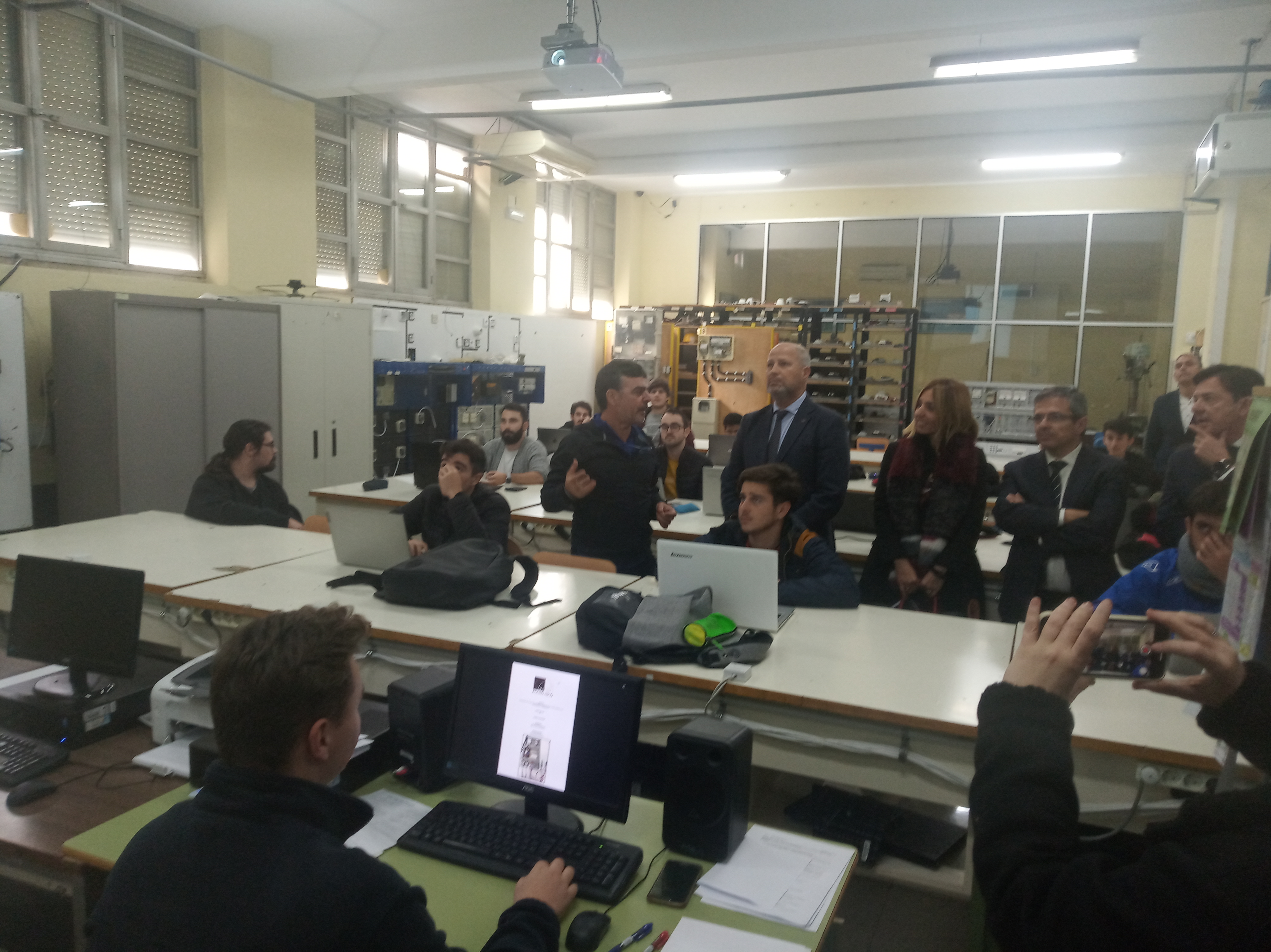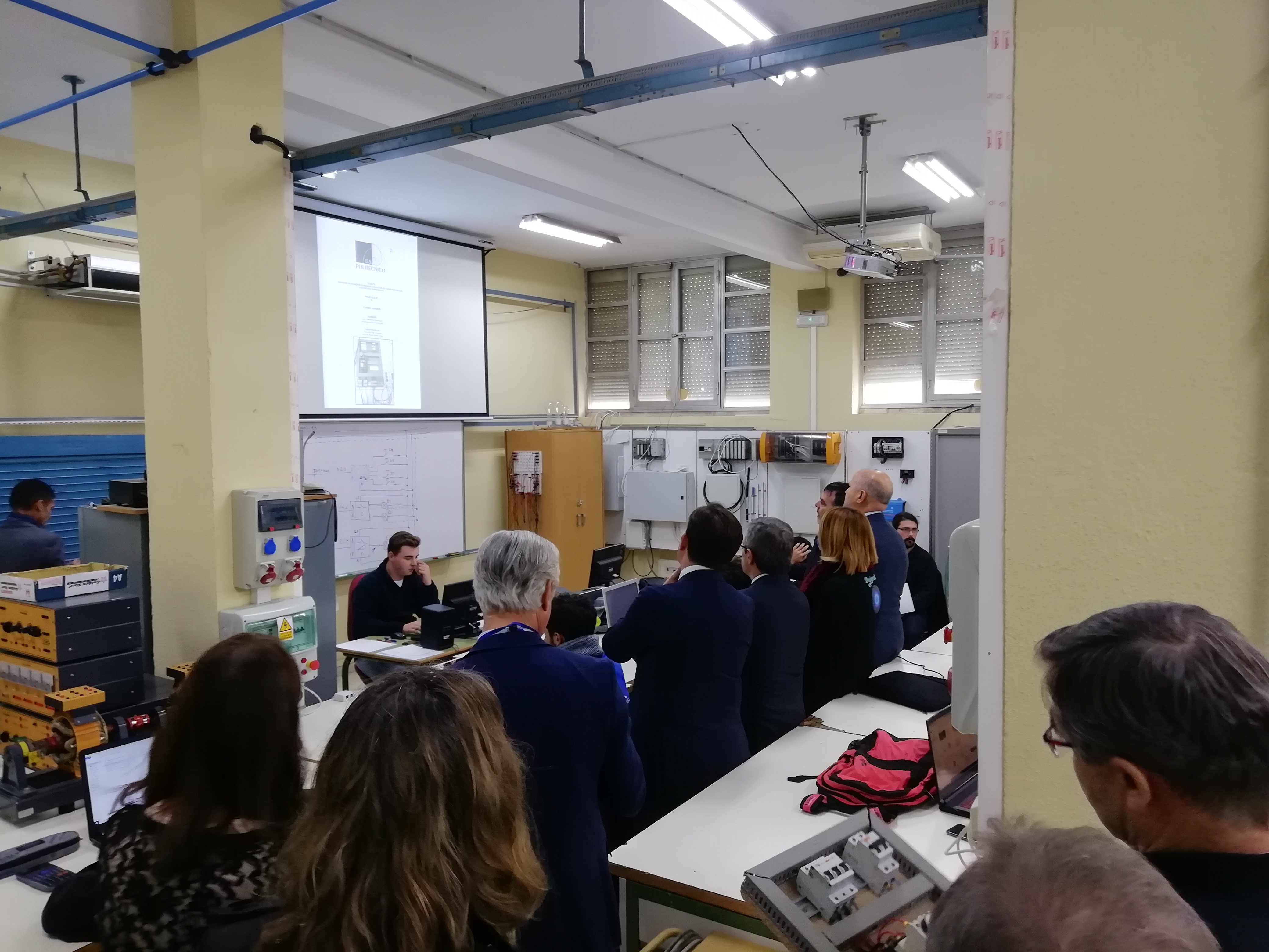 Tras el acto de la firma, los asistentes realizaron una visita a los talleres y laboratorios del centro en el que pudieron observar las actividades formativas que en esos momentos se estaban llevando a cabo en ellos, intercambiando impresiones con el profesorado y alumnado. Igualmente comprobaron algunas de las instalaciones del centro, entre ellas las relacionadas con los proyectos de dinamización de las relaciones empresas-centros educativos de la Dirección General de FP: la Acumulación de hielo para apoyo en la climatización y el SGIEE (Sistema de Gestión de Inst. y Eficiencia Energética) del centro.
