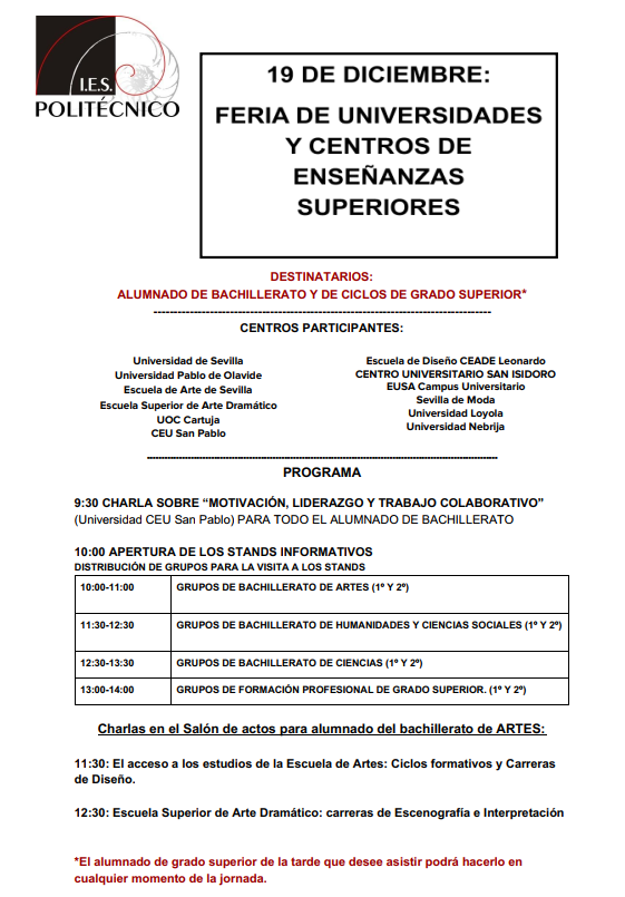19/12/2019 FERIA DE UNIVERSIDADES Y CENTROS DE ENSEÑANZAS SUPERIORES EN EL POLITÉCNICO