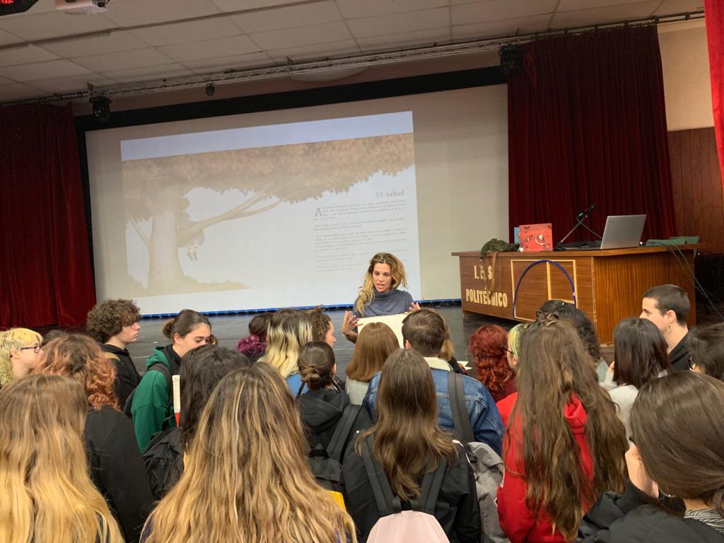 Asistió a la misma el alumnado de 1º de Bachillerato y los 2º de Bachillerato de Arte mostrándose complacidos al compartir la escritora e ilustradora sus bocetos, storyboards, proyectos y , sobre todo, motivarlos para la creación constante.