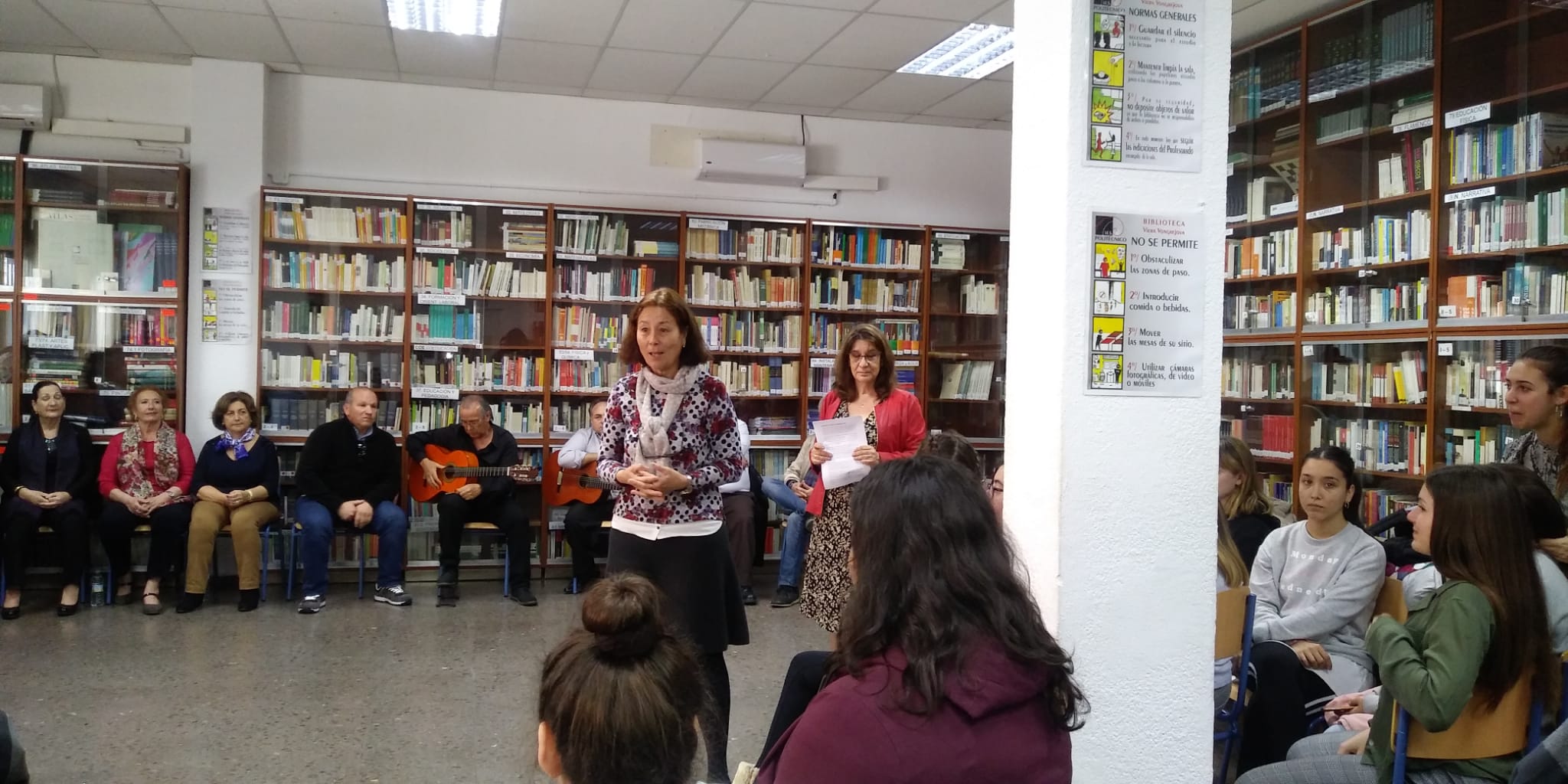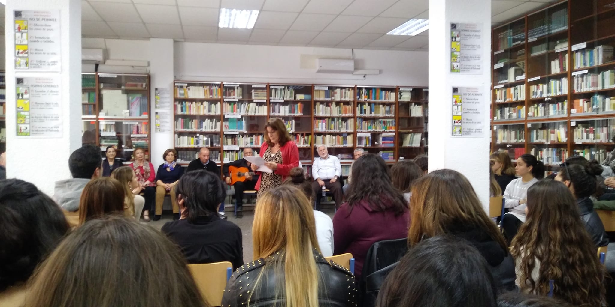 En este caso el acto consistió en leer un texto a los alumnos reunidos en la biblioteca y posteriormente, gracias a la colaboración de la peña flamenca “Cerro del Águila”, ilustrar con varios cantaores y guitarristas el mensaje que se deseaba transmitir.
