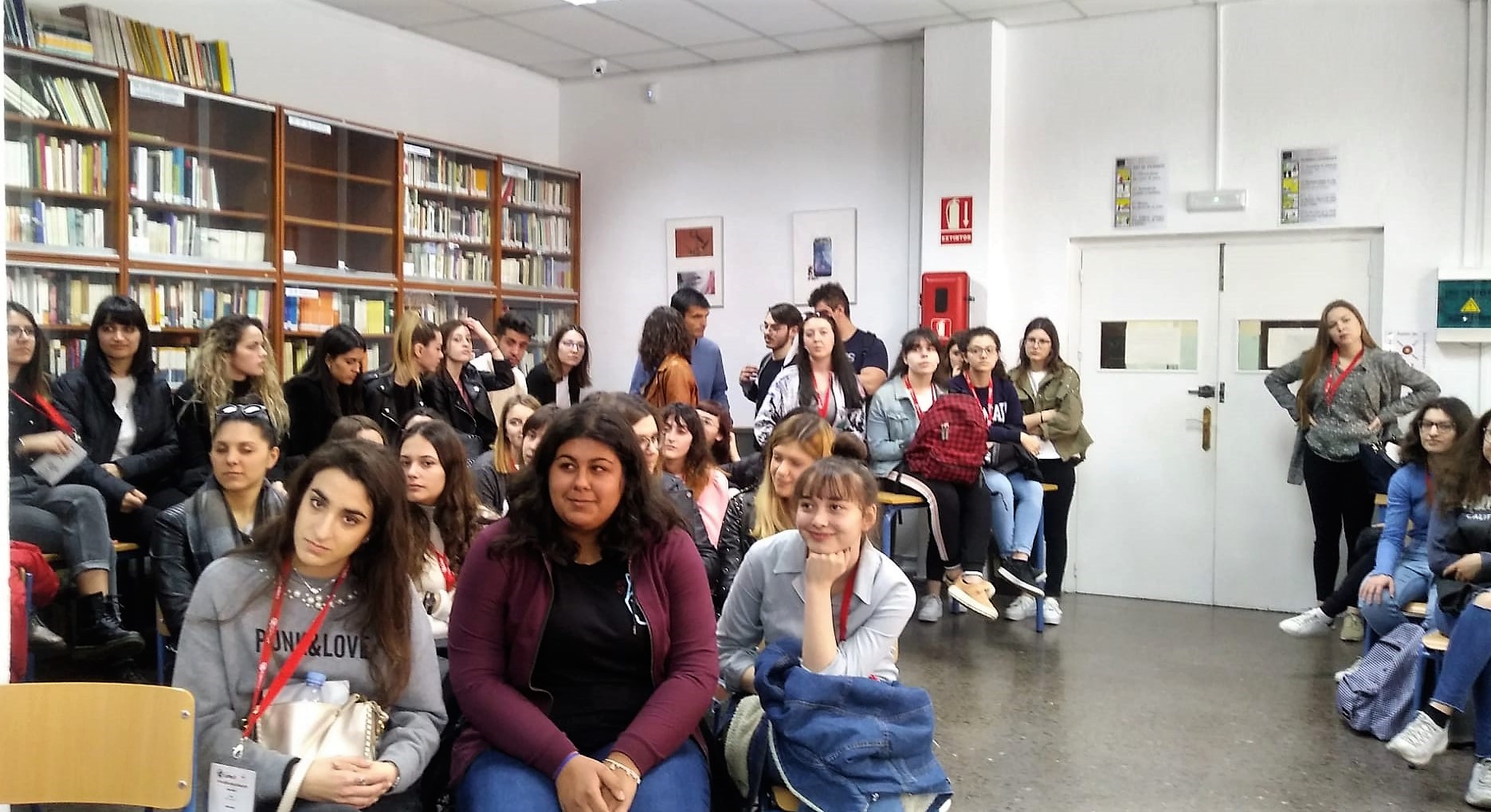 con el alumnado de 1º de Bachillerato de Artes de la actividad celebrada en la biblioteca «La mujer en el flamenco y en el romancero» organizado por la profesora Dña. Inés Durán dentro del proyecto «Pacto de Estado contra la