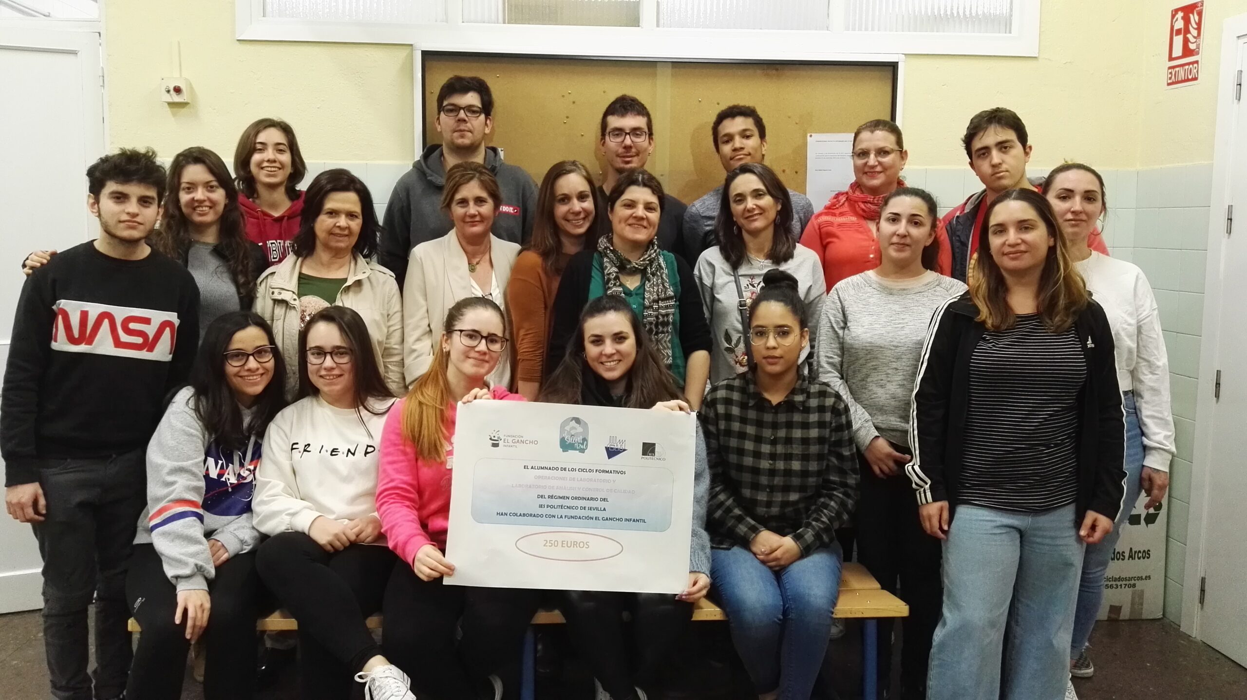 Alumn@s y profesorado de los Ciclos Formativos de Operaciones de Laboratorio y de Laboratorio de Análisis y Control de Calidad del Departamento de Química han colaborado con la Fundación El Gancho Infantil con la elaboración en los laboratorios del centro de diferentes tipos de jabones y su posterior venta en el IES Politécnico con una recaudación de 250 € que han sido donados al Proyecto El Sillón Azul.
