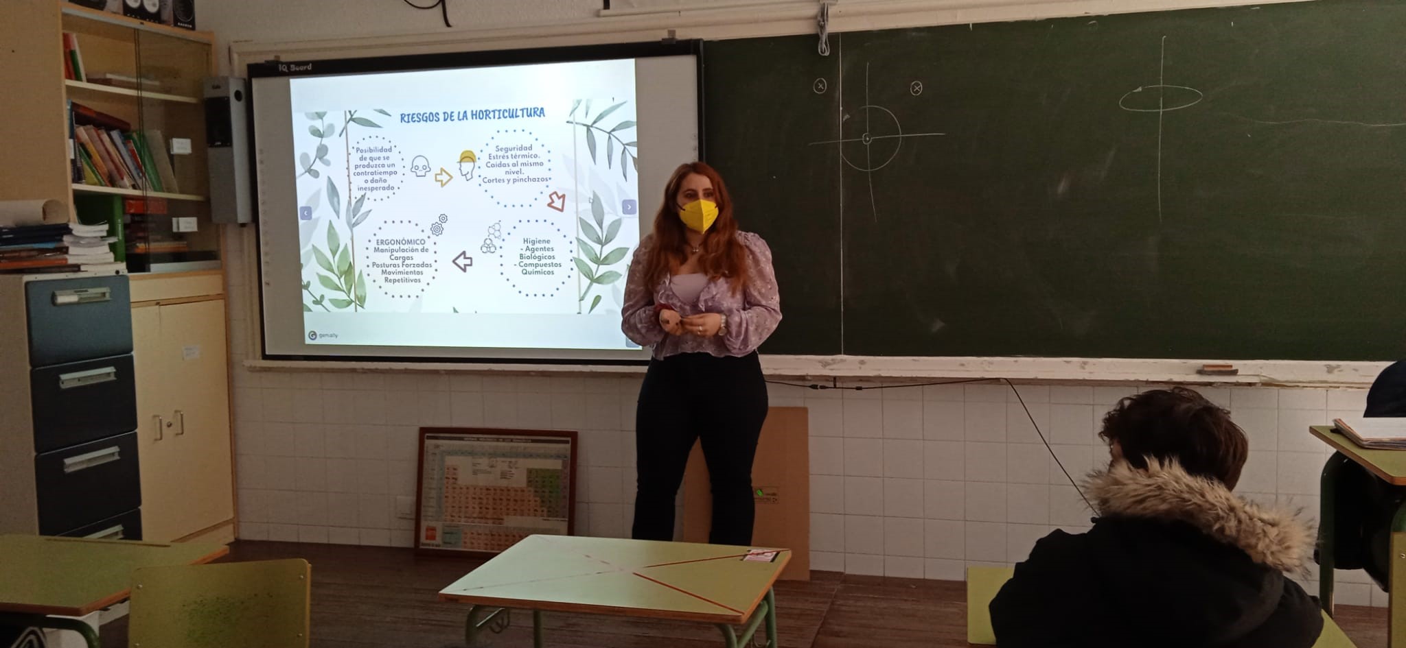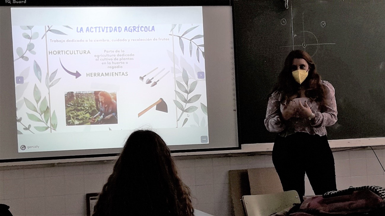 Este pasado lunes, 22 de febrero, Teresa López Navas, una de nuestras alumnas del Ciclo Formativo Superior de Prevención de Riesgos Profesionales ha dado una clase estupenda, en el marco de la materia de Anatomía aplicada, al alumnado de Bachillerato de Ciencias que trabaja en nuestro nuevo huerto escolar, el cual forma parte del Proyecto de Innovación educativa “Implantación de un currículum de Emergencia Climática en el IES Politécnico”.