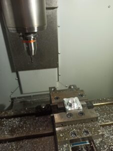 A continuación, el alumnado del CFGM de Mecanizado, realiza el mecanizado de la pieza en CNC, siguiendo las instrucciones del profesorado de Fabricación Mecánica.