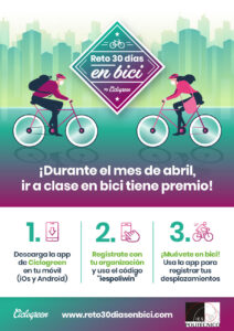 Nos hemos sumado al Reto 30 días en bici de CicloGreen, en la que le personal del centro puede descargarse la APP y ayudar a ganar km en bici libres de CO2 dentro de la “carrera” que el reto supone entre las entidades participantes.