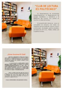 EL Departamento de Actividades Complementarias, el Departamento de Lengua Castellana y Literatura y la Biblioteca del Centro, han puesto en marcha un club de lectura. El propósito del mismo es crear un comunidad de lectores con todos los miembros de la familia de nuestro centro: profesorado, alumnado, padres y madres, personal de servicios…Todos unidos por la pasión lectora.