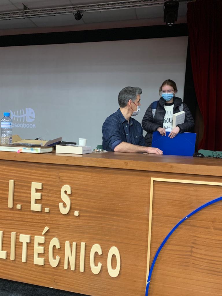 Sánchez vino de forma exclusiva a nuestro centro para presentar su último gran éxito literario que está siendo todo un éxito de crítica y ventas a nivel nacional. De esta forma, se desarrolló un interesante encuentro literario con más de 100 alumnos de nuestro centro que llenaron (dentro de las aforo COVID) nuestro Salón de Actos. Sin lugar a dudas, ha sido uno de los momentos más emocionantes de la corta pero intensa historia de nuestro Club de Lectura.