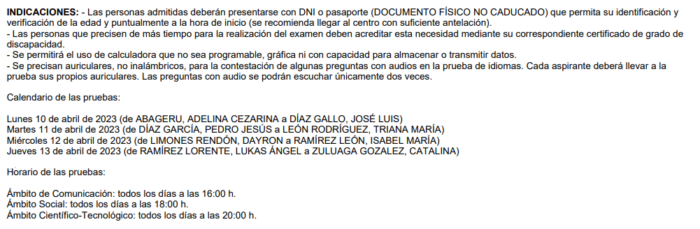En la siguiente imagen se recoge el calendario de las Pruebas de Acceso a CFGM que se celebrarán en el mes de abril entre los días 10 y 13, según orden de apellidos indicado más abajo para los solicitantes admitidos en ellas en nuestro centro. La imagen recoge también las indicaciones o instrucciones para los inscritos. Es importante: