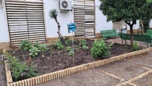A nuestro huerto se une la belleza de nuestro jardín de plantas aromáticas y la próxima plantación en nuestro jardín vertical.