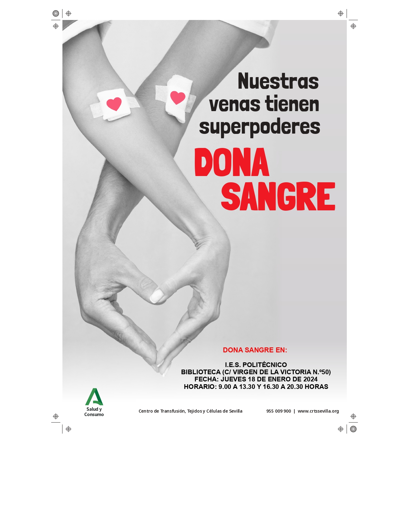 El próximo JUEVES 18 DE ENERO realizaremos una nueva una campaña de donación en nuestro centro. Como es habitual será en LA BIBLIOTECA en horario de 9.00 a 13.30 y 16.30 a 20.30 horas. Se necesita sangre de todos los grupos.