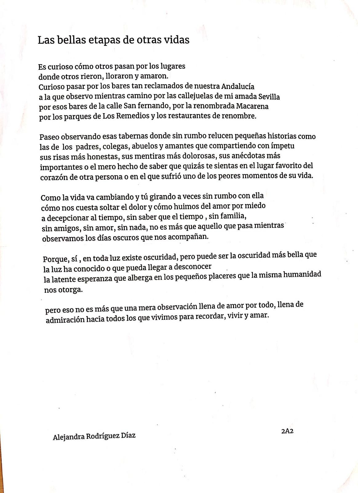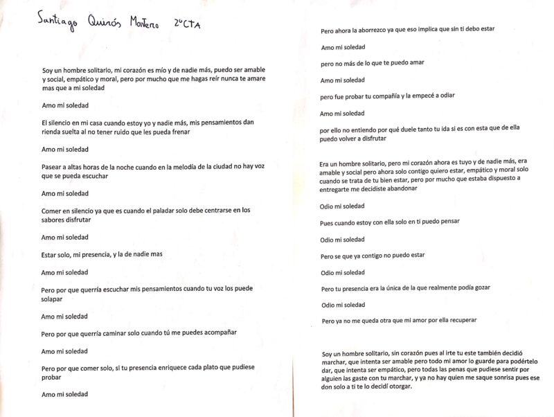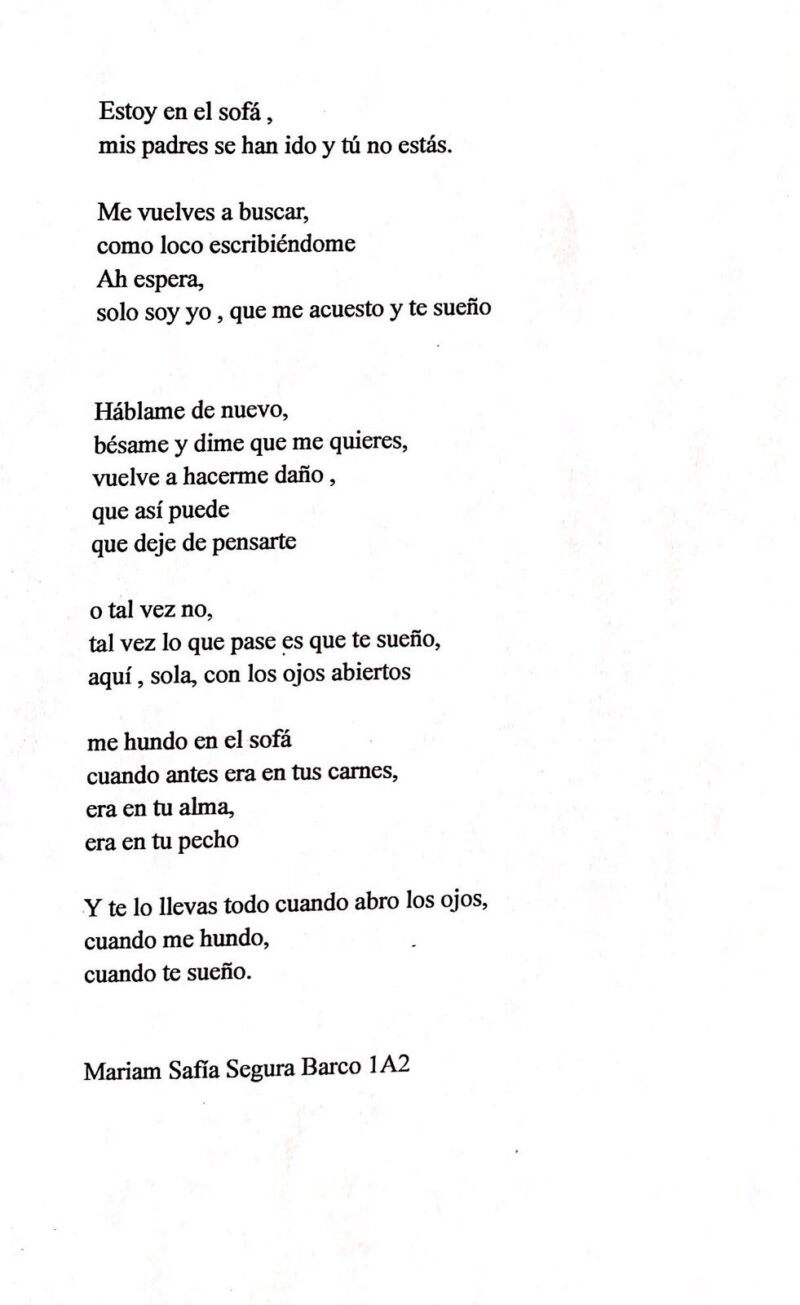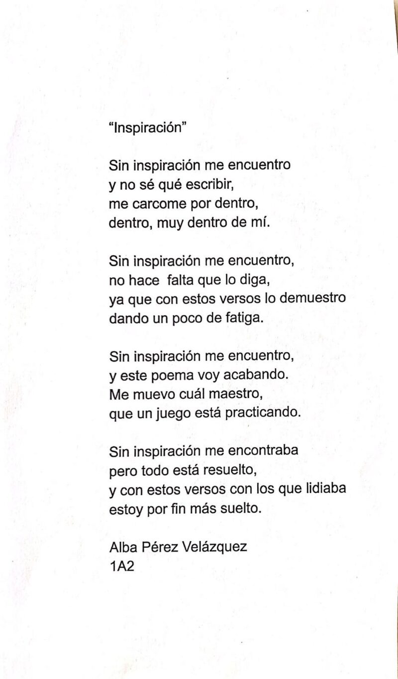 Entrega más que especial en esta ocasión con poemas de nuestro alumnado del Concurso Gloria Fuertes y que ha contado con una participación de alta calidad que ha redundado en dos 2º y 3º premios. Compartimos aquí los y las poetas y sus obras premiadas para tu disfrute. Pincha sobre cada imagen para leer el poema con mayor nitidez.