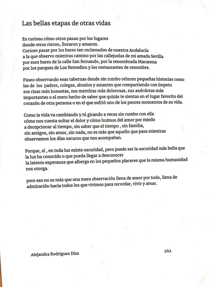 3º Premio: Alejandra Rodríguez Díaz, 2º A2, 30€.