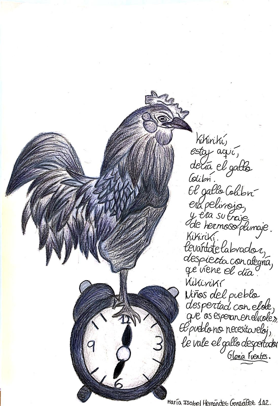Por otro lado la ganadora del apartado del Concurso de Ilustraciones de Poemas Gloria Fuerte ha sido María Isabel Hernández González 1ºA2. A continuación su ilustración ganadora (pincha sobre ella para verla con mayor nitidez).