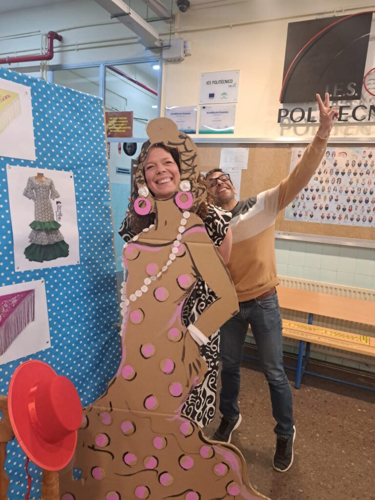 Estos alumnos de Países Bajos se encuentran en unos estudios que permiten conocer las distintas enseñanzas técnicas, sociales y administración que puedan estudiar. Se han divertido también ya que estaba a punto de comenzar la feria de abril. ¡¡Incluso se han animado a bailar!!