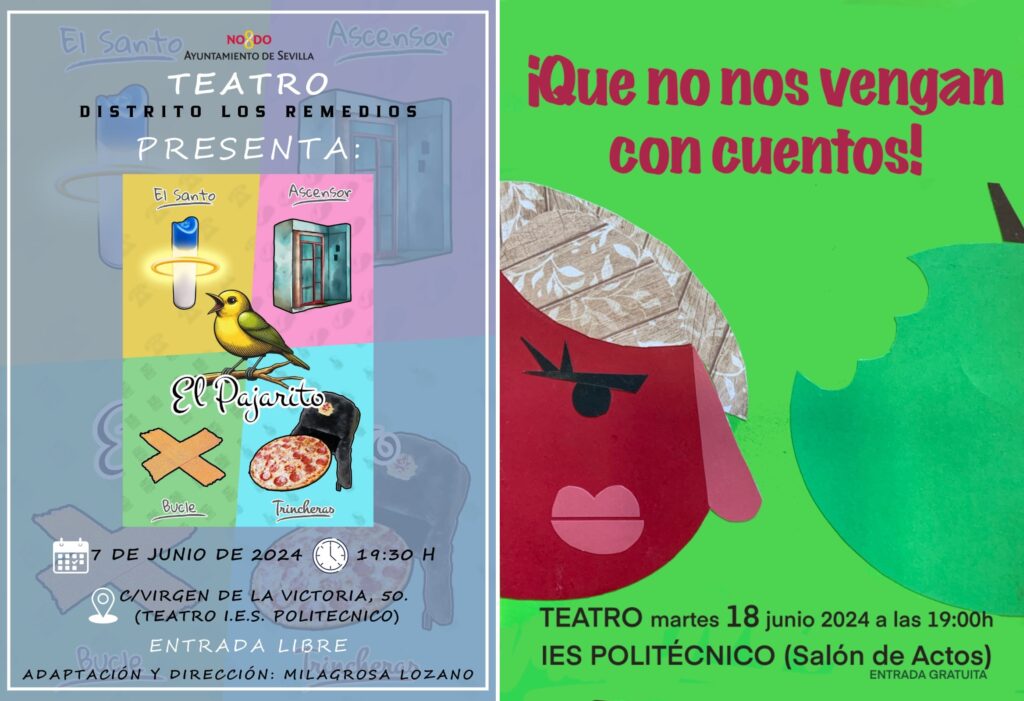 Este próximo viernes 7 de junio a las 19:30h el taller de teatro del Distrito de Los Remedios que se desarrolla en nuestro centro durante todo el curso bajo la dirección de Mila Lozano, representará cuatro estupendas obras, con la participación conjunta de vecinos y vecinas del barrio y alumnado de bachillerato del IES Politécnico. […]