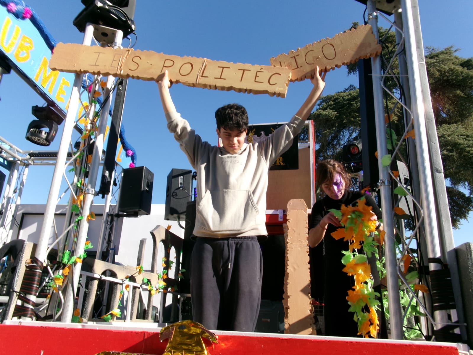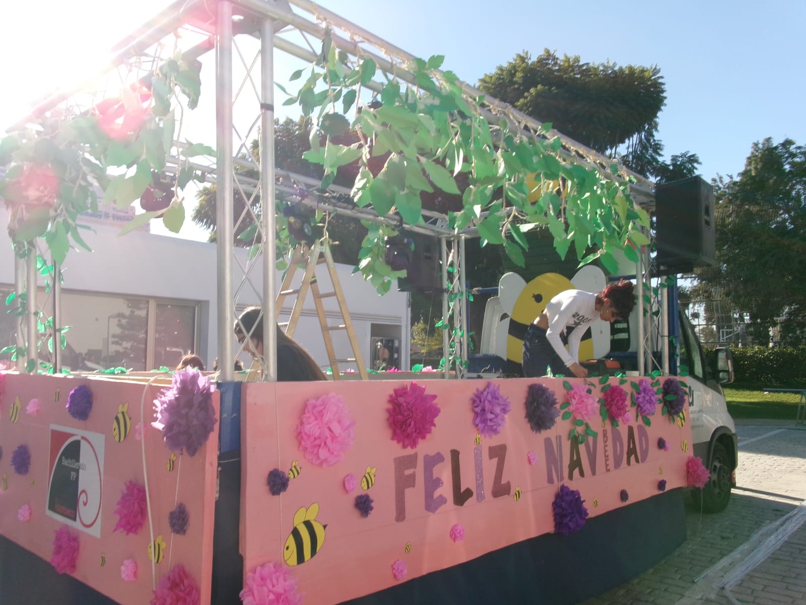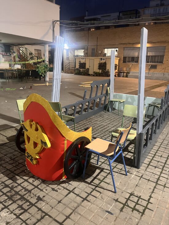El alumnado de bachillerato de artes, guiado por el profesorado del Área Artística de la mano de la profesora Lola Estacio, ha diseñado, creado durante todo el primer trimestre una extraordinaria decoración de las carrozas del cortejo que acompañaron al Heraldo, procediendo incluso a su montaje desde temprano durante toda la jornada previa del mismo día 26, durante la cual también hemos contado con la ayuda de alumnado de las otras modalidades de bachillerato.