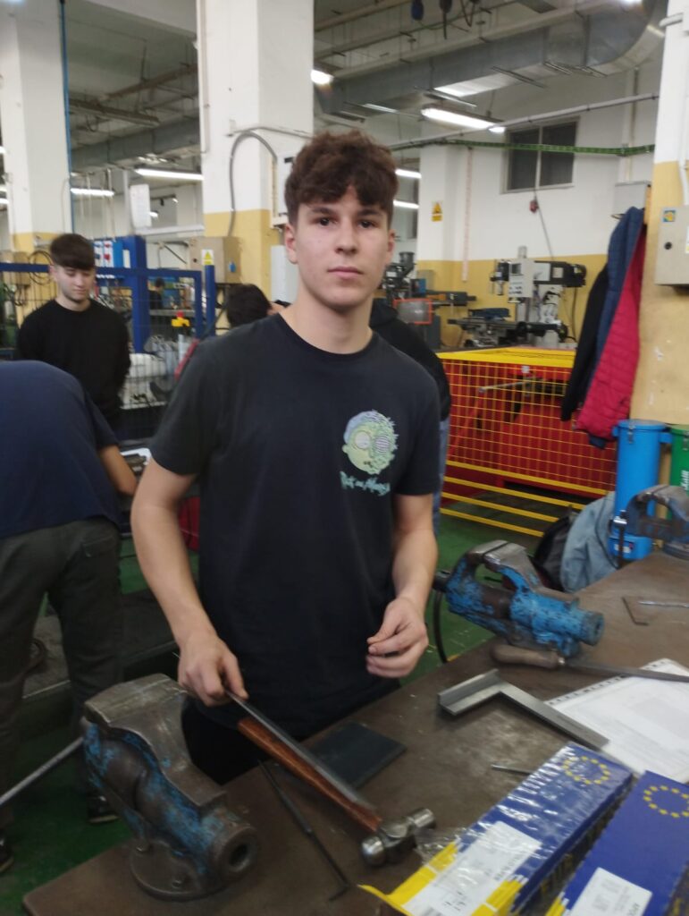 Durante el tiempo que ha compartido con nosotros, Marco ha asistido a clases junto con el alumnado del centro en el taller de Fabricación Mecánica donde ha trabajado con el torno y la fresadora. También ha asistido a clases de soldadura, sistemas automatizados y diseño de sistemas.