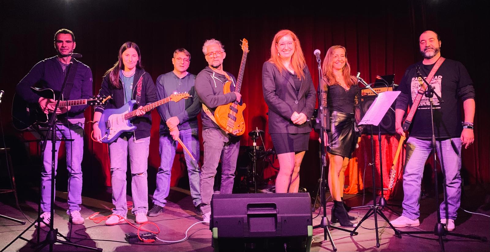Espectacular puesta en escena de nuestra nueva banda/grupo de pop-rock del IES Politécnico. En un repleto salón de actos de alumnado del centro Cristina y Macarena en las voces, Fernando en la batería, Marcos en el bajo y sonido, Carlos en la guitarra eléctrica y en la clásica Antonio, y, especialmente, Alejandra, a la guitarra y voz, han levantado a todo el público y deleitado durante una hora con varios temas del s. XX y XXI, finalizando con el canto del himno de Andalucía.