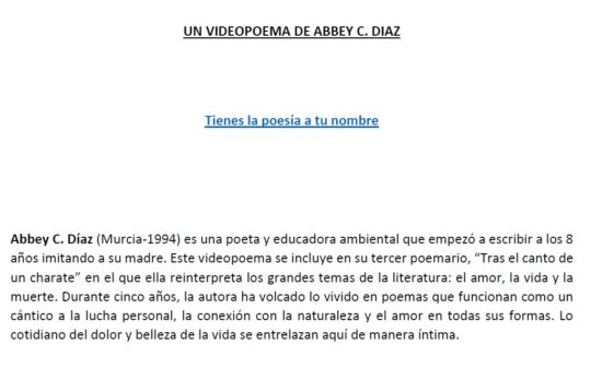 Los promotores de esta sección de poesía colgada, los profesores de FOL Rafa Vega y José Luis Insausti, te desean un buen final de curso y un feliz verano y te recuerdan que puedes enviar tus propuestas para el próximo curso a actividades@iespolitecnico.es o entregárselas a Francisco “Paco” Garzón, nuestro filósofo coordinador de actividades, admitiéndose poemas en todos los idiomas, de autoría propia o de cualquier poeta.