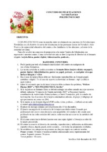 El IES POLITECNICO pone en marcha entre su alumnado un concurso de Felicitaciones Navideñas con el objetivo de servir de felicitación de las próximas fiestas de Navidad y Año Nuevo a la comunidad educativa del centro, a los familiares de los alumnos y al resto de la sociedad sevillana.