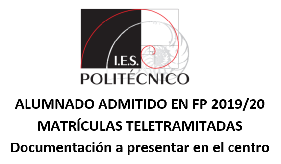 Las personas admitidas en FP en el IES Politécnico que hayan teletramitado su matrícula deberán aportar al centro los documentos que se indican: Fotocopia del requisito de acceso. 1 foto personal tamaño carnet de identidad. Fotocopia del DNI del alumno/a. Fotocopias de los DNIs de los padres si es menor de edad. Hoja de autorizaciones […]
