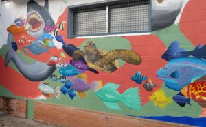 Estudiantes del 2º curso de Bachillerato de Artes del IES Politécnico de Sevilla pintan murales del mercado de abastos de Los Remedios en una iniciativa