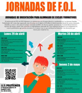 Durante los días 29 y 30 de abril y 2 de mayo se celebrarán en el IES Politécnico las Jornadas de Orientación Profesional dirigidas al alumnado